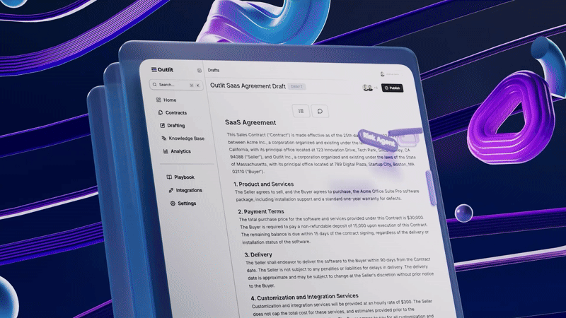 This animation was created to introduce Outlit ai, an ai driven platform designed to simplify contract management. The video showcases how Outlit ai helps businesses and legal professionals by efficiently checking, correcting, and completing contracts with precision, ultimately saving time and reducing legal risks.